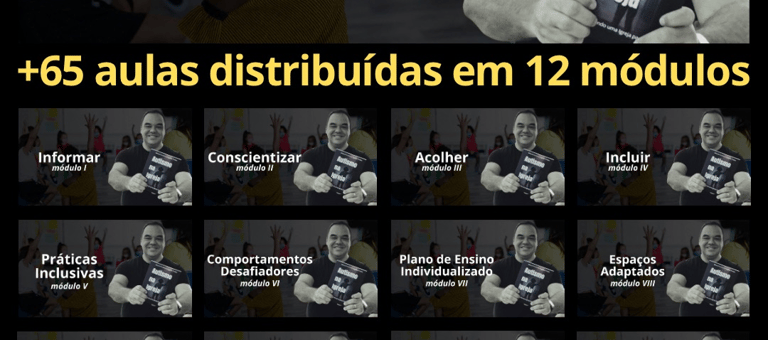 São mais de 60 aulas distribuídas em 12 módulos temáticos: